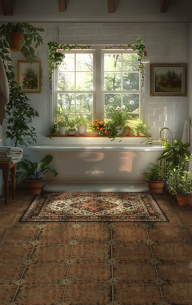Baignoire de salle de bain de printemps d'Avezano et toile de fond de photographie de balayage de plantes vertes