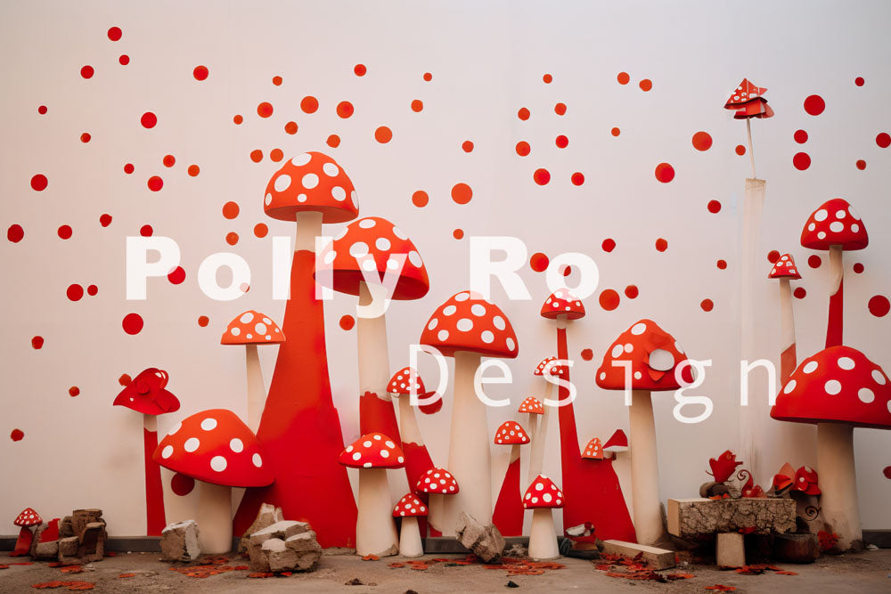 Toile de fond pour photographie de la Saint-Valentin avec champignon rouge Avezano conçue par Polly Ro Design