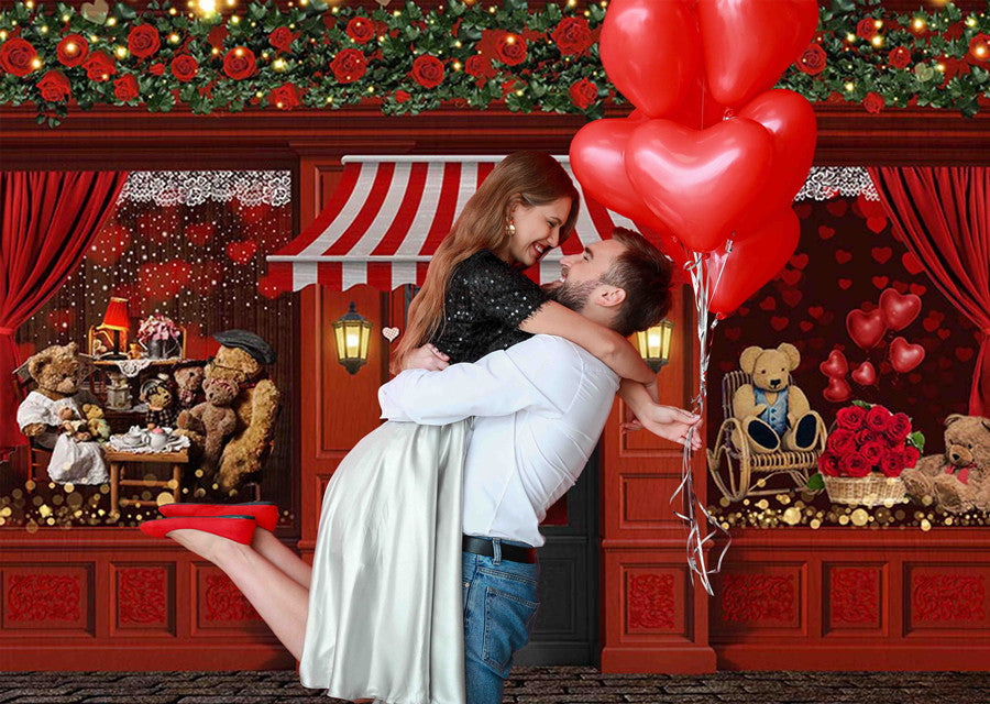 Toile de fond pour photographie de la Saint-Valentin avec ballon d'amour rouge Avezano conçue par Polly Ro Design