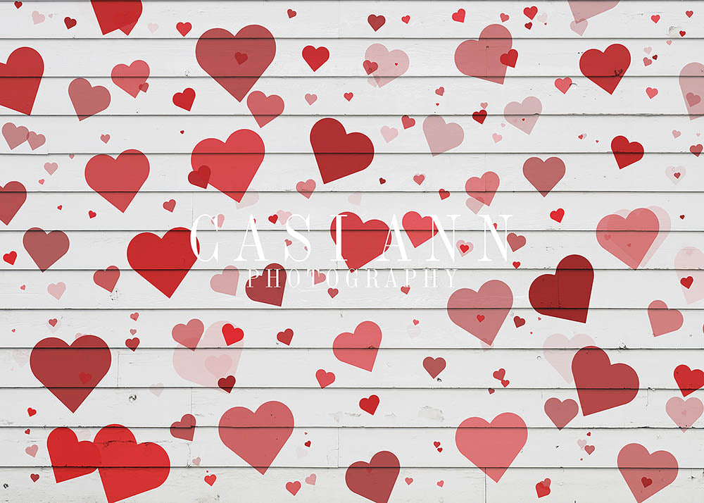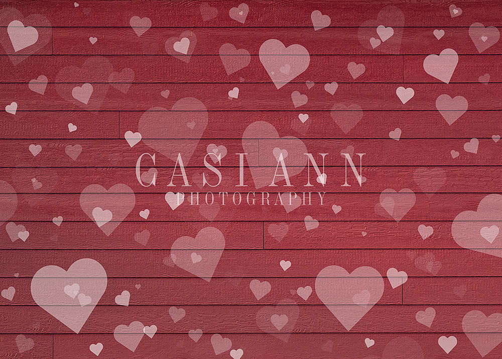 Toile de fond pour photographie murale de grange rouge avec coeurs blancs d'Avezano conçue par Casi Ann