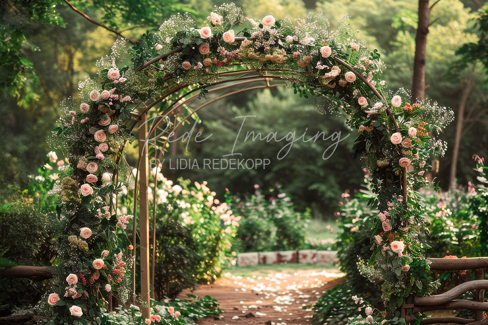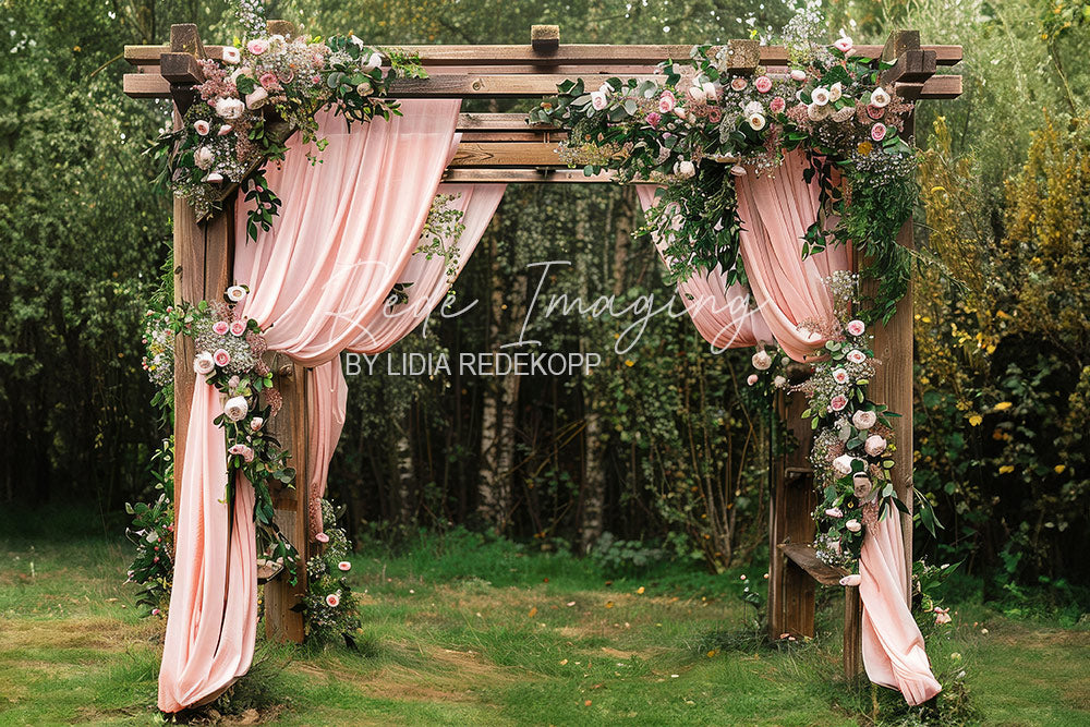 Toile de fond pour photographie d'arche et de fleurs roses d'Avezano conçue par Sai photo & videography