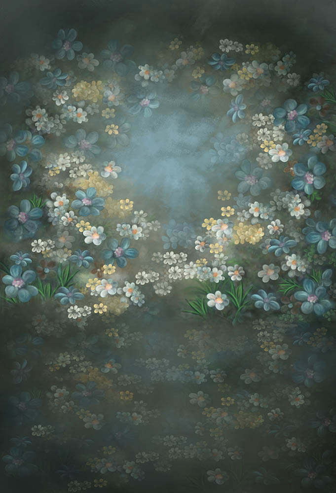 Toile de fond pour photographie de fleurs peintes à la main abstraites vertes d'Avezano