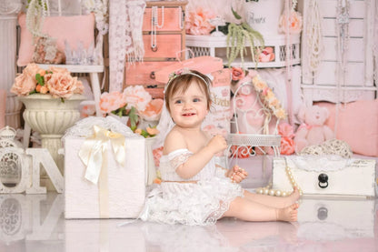 Toile de fond pour photographie de scène de cabinet et de fleurs orange rose d'Avezano