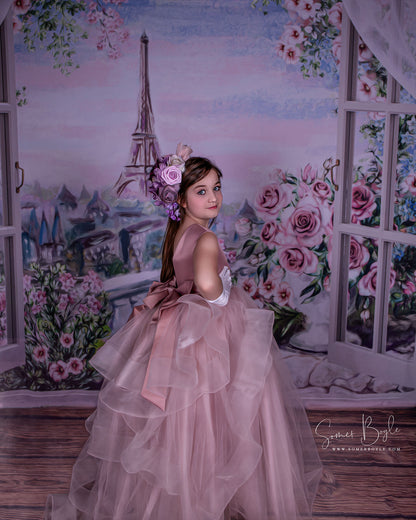 Avezano Fenêtre Fantasy Fleurs Et Tour Photographie Toile De Fond