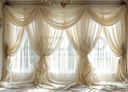 Toile de fond pour photographie de salle avec rideau beige bohème Avezano