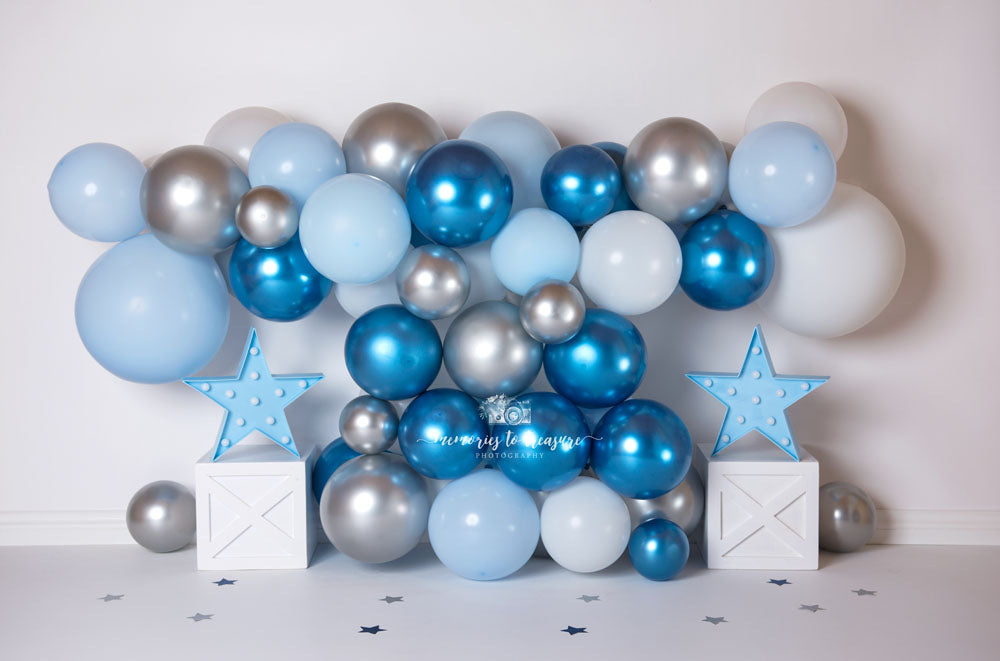 Toile de fond pour photographie de ballons bleus d'anniversaire Cake Smash d'Avezano par Paula Easton