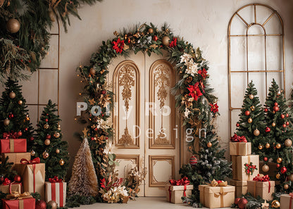 Avezano Décorez les portes et les cadeaux de Noël Toile de fond pour photographie Conçu par Polly Ro Design