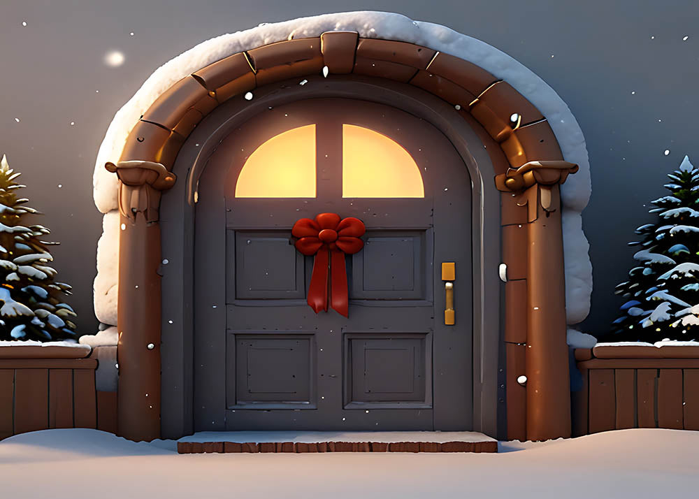 Toile de fond pour photographie de Noël avec porte enneigée d'Avezano