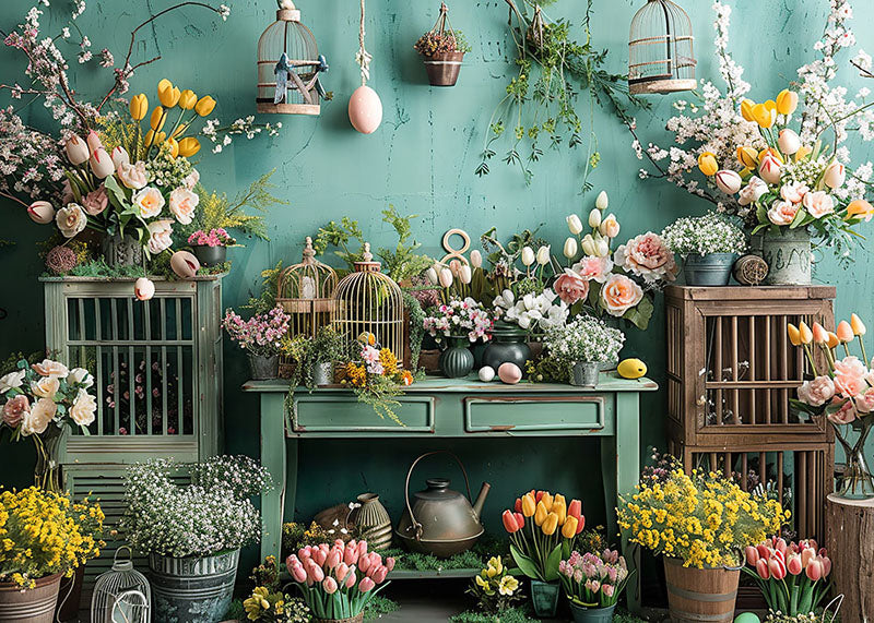 Toile de fond pour photographie de fleurs et de plantes en pot de printemps de Pâques à Avezano