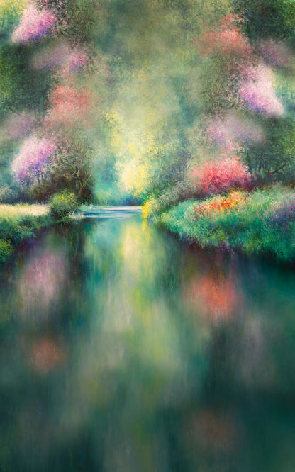 Toile de fond pour la photographie de peinture à l'huile de fleurs d'Avezano dans l'eau