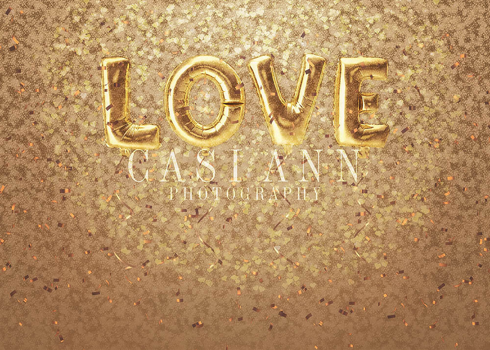 Ballons d'amour scintillants Avezano - Toile de fond de photographie dorée mate conçue par Casi Ann