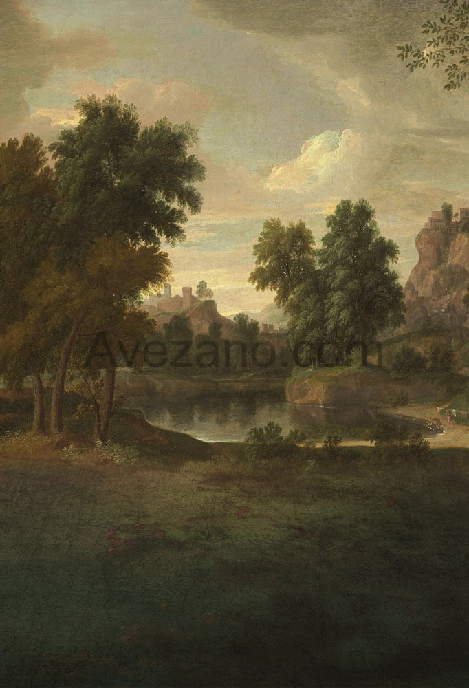 Toile de fond de photographie de style peinture à l'huile de la forêt de montagne verte d'Avezano