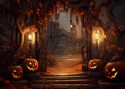 Toile de fond de citrouille de nuit de maison d'Halloween d'Avezano pour la photographie