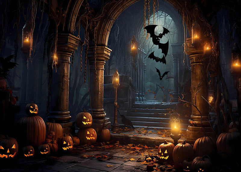Toile de fond de citrouille et de chauve-souris pour la photographie de la maison d'Halloween d'Avezano