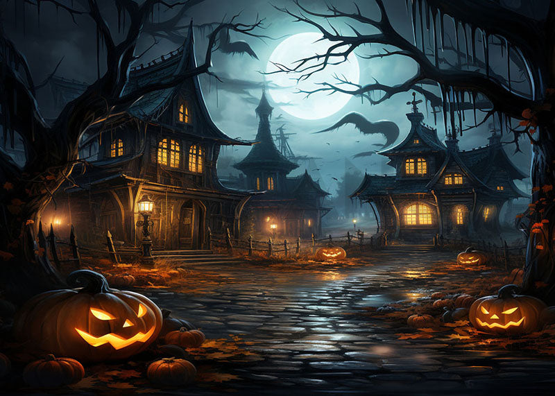 Toile de fond de rue de citrouilles d'Halloween d'Avezano pour la photographie