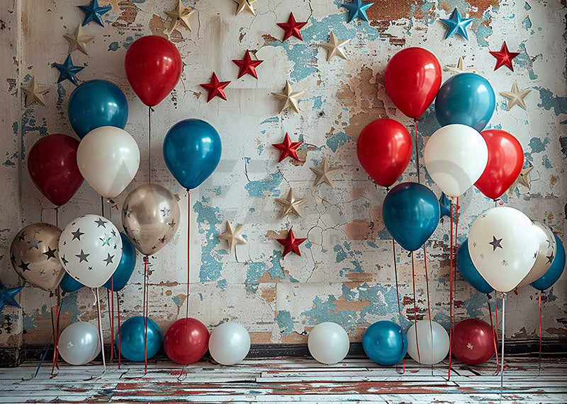 Ballons du jour de l'indépendance d'Avezano et arrière-plan de photographie de décoration d'étoile à cinq branches