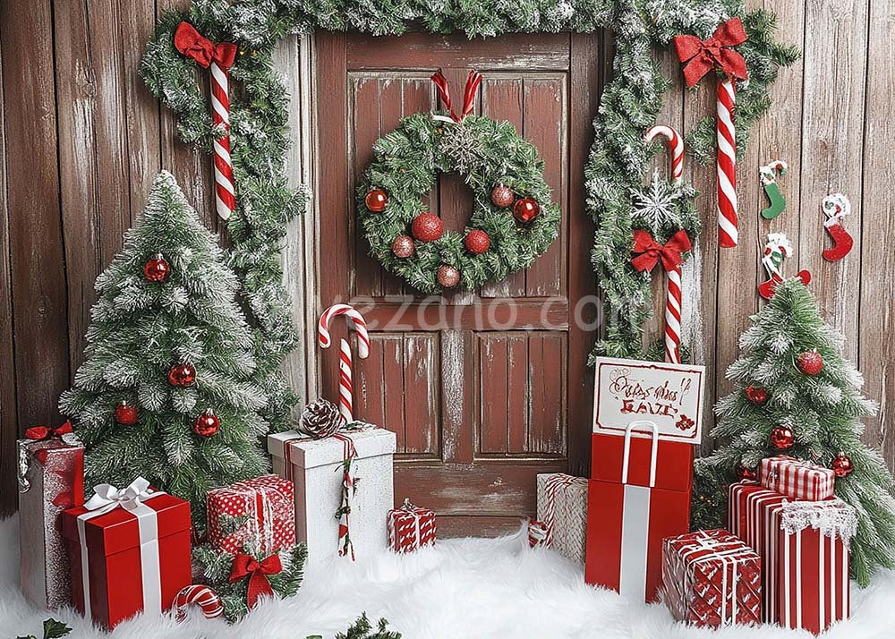 Toile de fond pour photographie de portes en acajou d'Avezano et de cadeaux de Noël