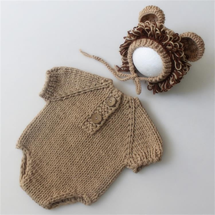 Avezano Costume Nouveau-Né Lion Laine Ensemble Accessoires Photographie Tenues