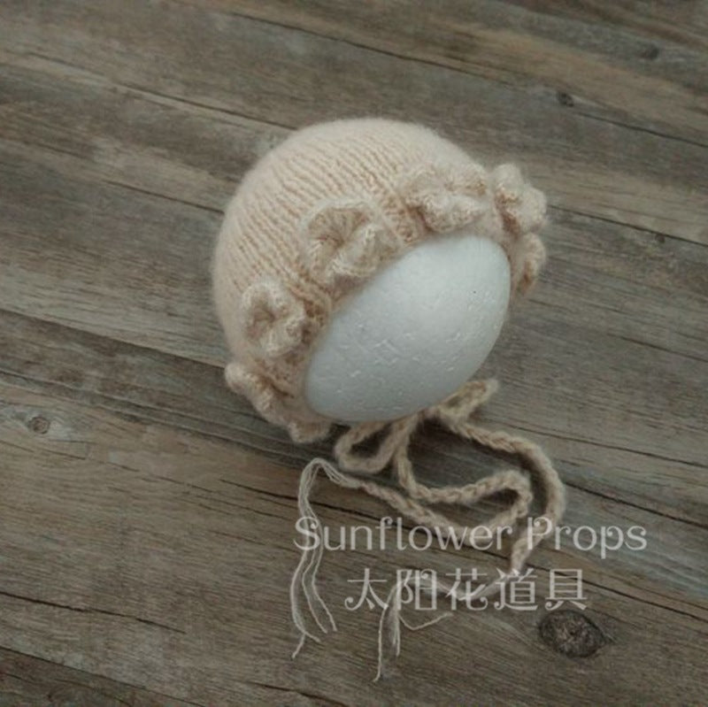 Avezano Bonnet pour nouveau-né Fleur Mohair Fil à cheveux Tournesol Accessoires