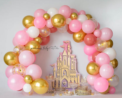 Toile de fond pour photographie de châteaux et ballons roses d'Avezano, conçue par Angela Forker