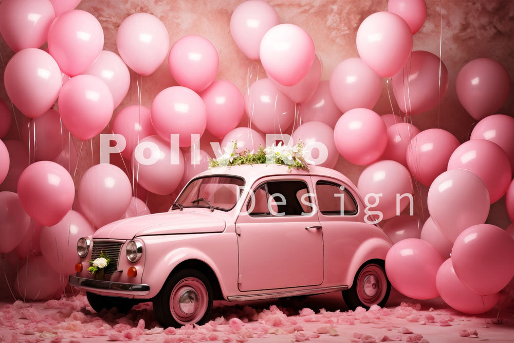 Avezano - Toile de fond pour photographie d'anniversaire avec gâteau de ballon rose pour la Saint-Valentin, conçue par Polly Ro Design