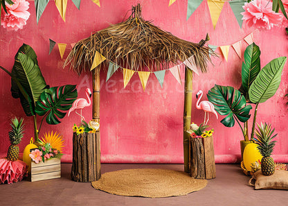 Fond de photographie de fête Cakesmash avec flamants roses d'Avezano