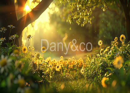 Toile de fond avec herbe et fleurs au petit matin au printemps à Avezano, conçue par Danyelle Pinnington