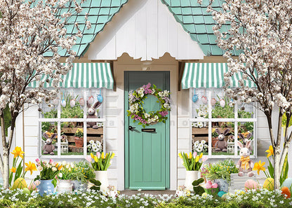 Toile de fond pour photographie de la porte verte de la fleur de Pâques du printemps d'Avezano
