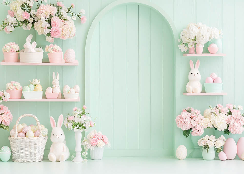 Avezano Printemps Pâques Murs Vert Clair et Ornements Photographie Toile de Fond