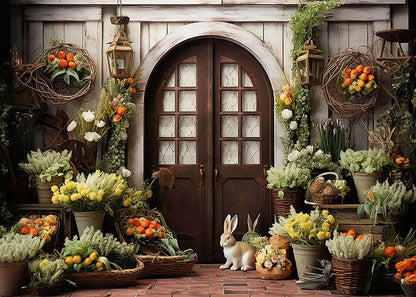 Avezano Spring Easter Pot Plants et Bunny Decoration Photographie Toile de fond