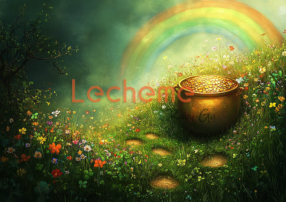 Toile de fond pour photographie de pots dorés et d'arcs-en-ciel du printemps d'Avezano par Lecheme Ruby Gu