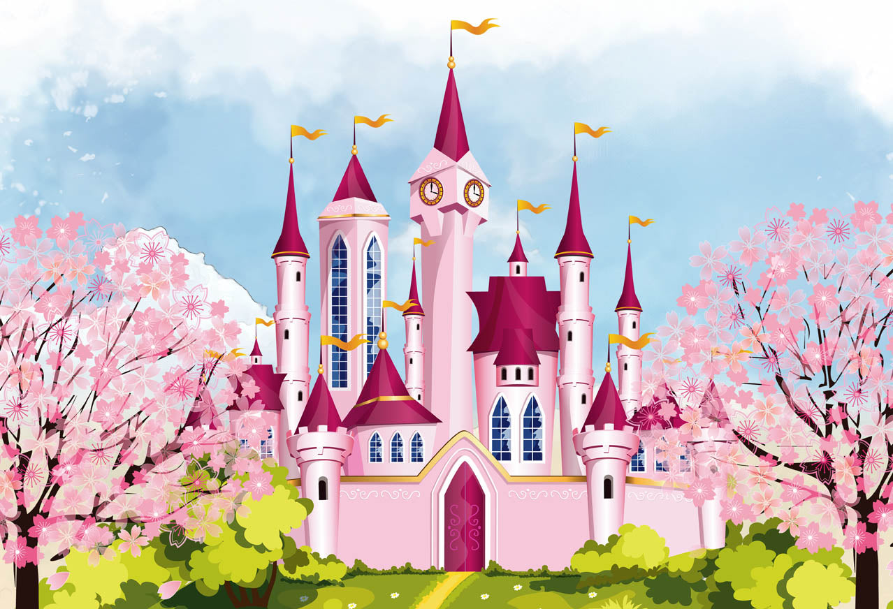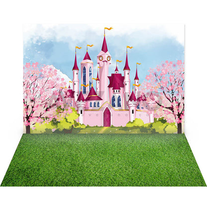 Ensemble de 2 toiles de fond sur le thème du château rose printanier d'Avezano