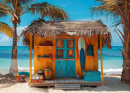 Toile de fond pour photographie de la petite maison d'été d'Avezano sur la plage