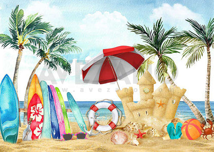 Toile de fond pour photographie de planche de surf sur la plage d'été d'Avezano