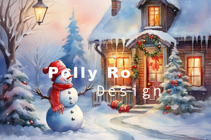 Toile de fond pour photographie de bonhomme de neige de Noël d'hiver d'Avezano conçue par Polly Ro Design