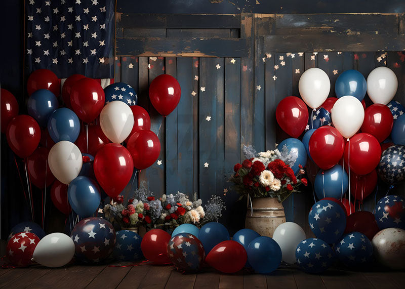 Avezano American Flag Balloon Flowers Independence Day Photography Backdrop