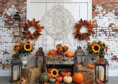 Avezano Autumn Sunflower and pumpkin decoration Photography Backdrop