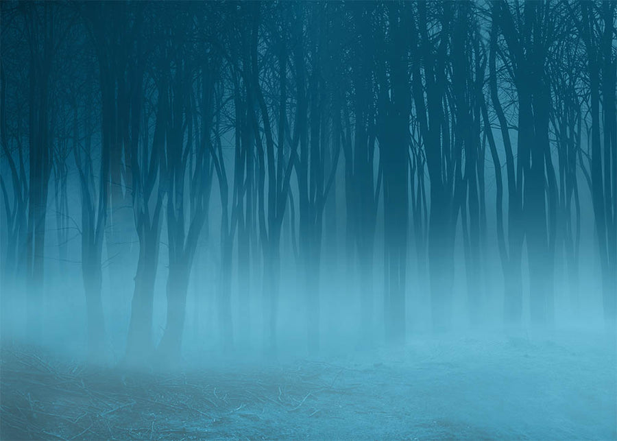 Avezano Blue Foggy Forest Halloween Photography Backdrop