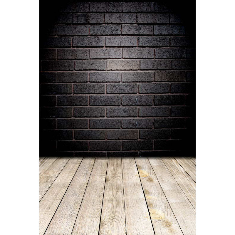 Avezano Carbon Black Color Brick Wall Texture Backdrop For Photography With Wood Floor