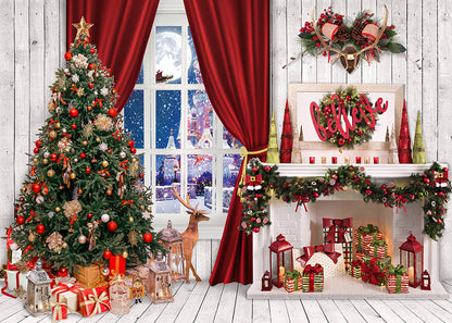 Avezano Christmas Decoration in the Wooden House Photography Backdrop