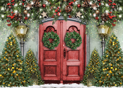 Avezano Christmas Decoration Red Door Photography Backdrop