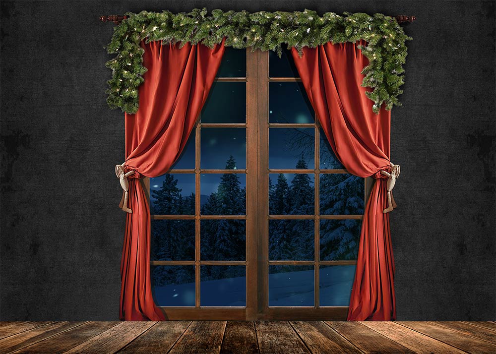 Avezano Christmas French Windows With Black Walls Photography Backdrop