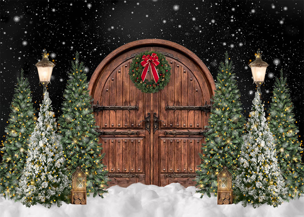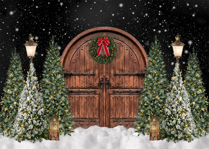 Avezano Christmas Tree Arched Wooden Door Photography Backdrop