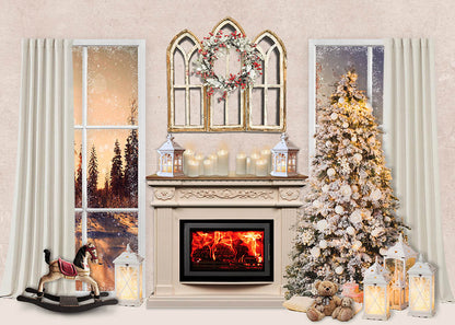 Avezano Christmas Tree Windows Fireplace Photography Backdrop