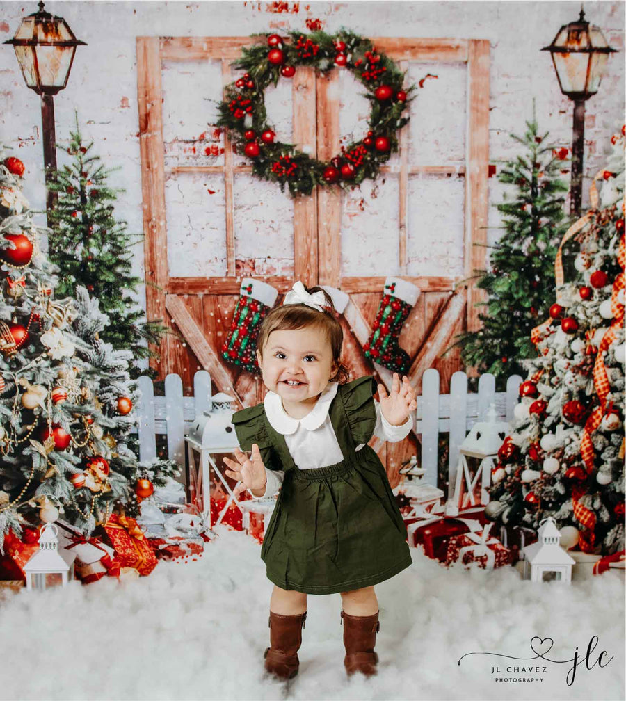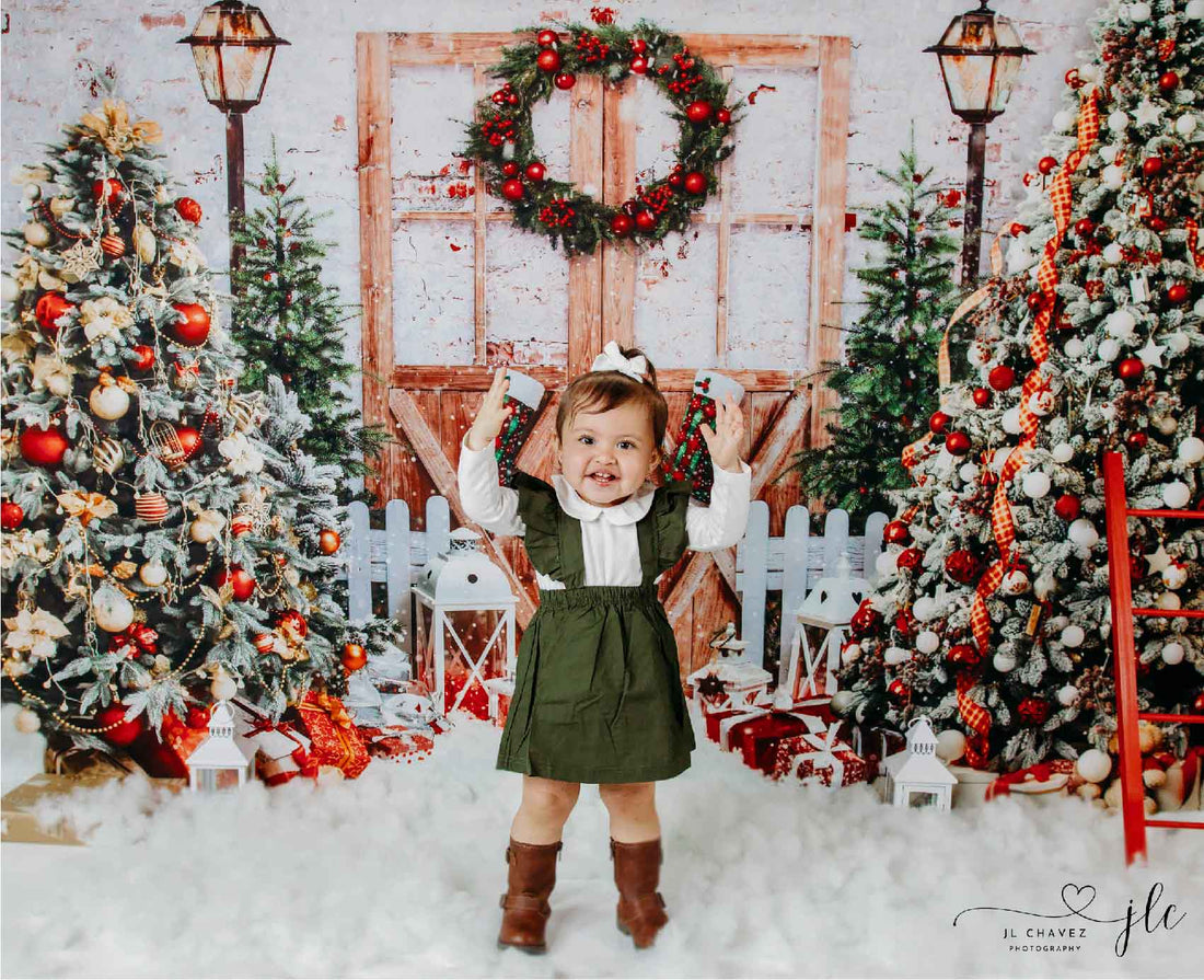 Avezano Christmas Trees and Wooden Door Backdrop for Photography