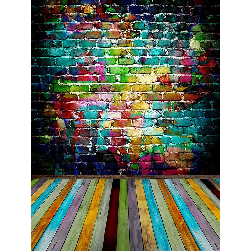 Avezano Colored Graffiti Brick Wall With Colored Wood Floor Texture Photo Backdrop
