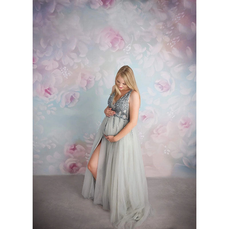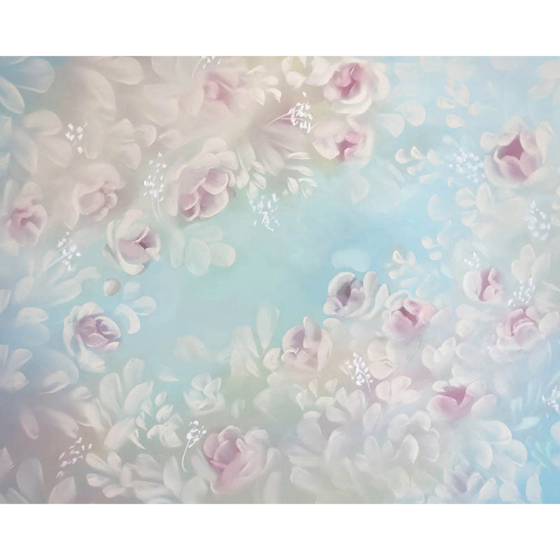 Avezano Light Blue And Pink Hand Painted Flowers Photography Backdrop