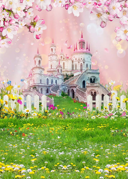 Avezano Spring Pink Dream Castle With Lawn Photography Backdrop