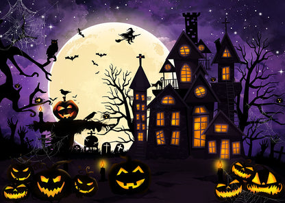 Avezano Witch'S Castle Purple Sky Halloween Backdrop for Photography