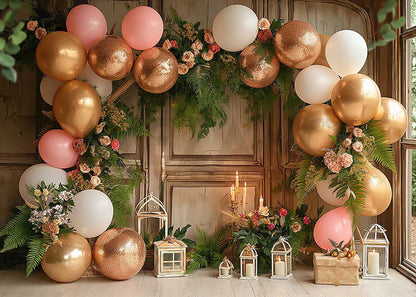 Avezano Balloon Arches and Leaves Photography Background
